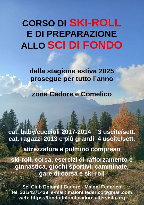 Risultati atleti Sci Club Dolomiti Cadore: Classifiche: https://fondodolomiticadore.altervista.org/wp-content/uploads/2025/10/classifica-gran-prix-sportful-2025.pdf